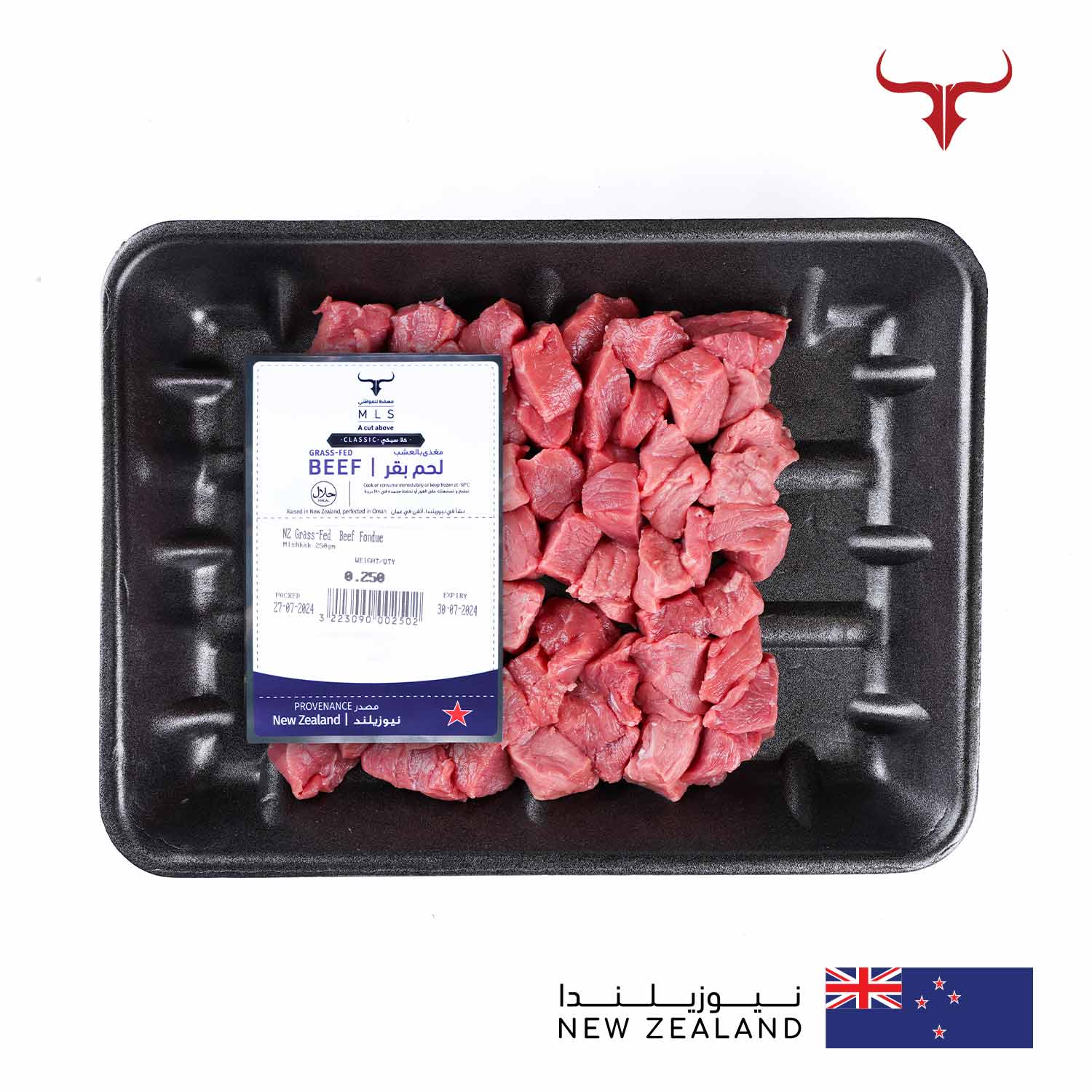 لحم بقر نيوزلاندي مغذى بالعشب- فوندو - كل منتجاتنا 100% حلال