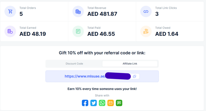 يتيح لك برنامج شركاء MLS التوصية بالأشخاص لموقعنا الإلكتروني والحصول على رصيد مقابل أي منتج يتم شراؤه من قبل الزوار الذين تمت إحالتهم. تقوم بمشاركة الرابط الذي نوفره مع الزوار، ونحن ندفع لك عمولة بنسبة 10% على كل عملية بيع يقوم بها الزوار الذين تمت إحالتهم باستخدام الرابط المشترك!
