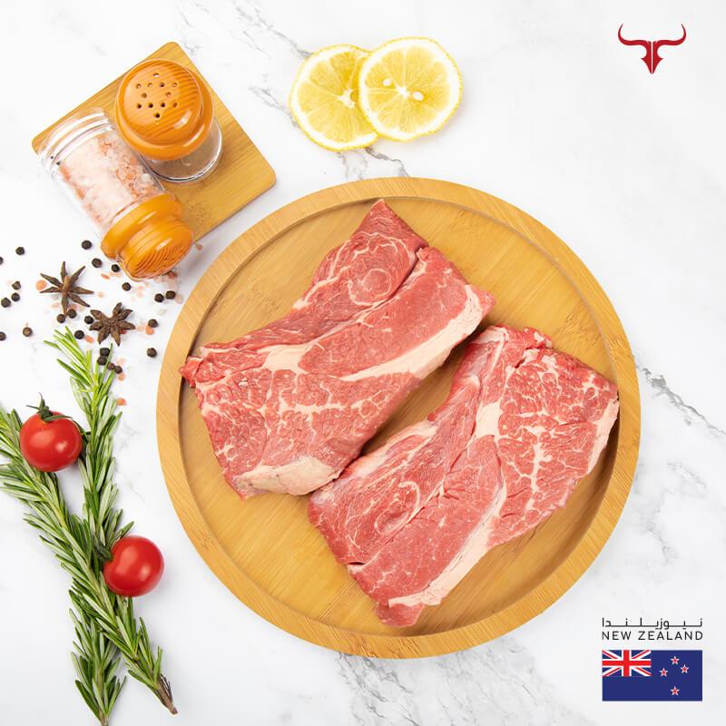1 or 2 steaks of fresh New Zealand grass-fed beef chuck for a flavourful experience. 100% hormone and antibiotic-free. All our products are 100% Halal.