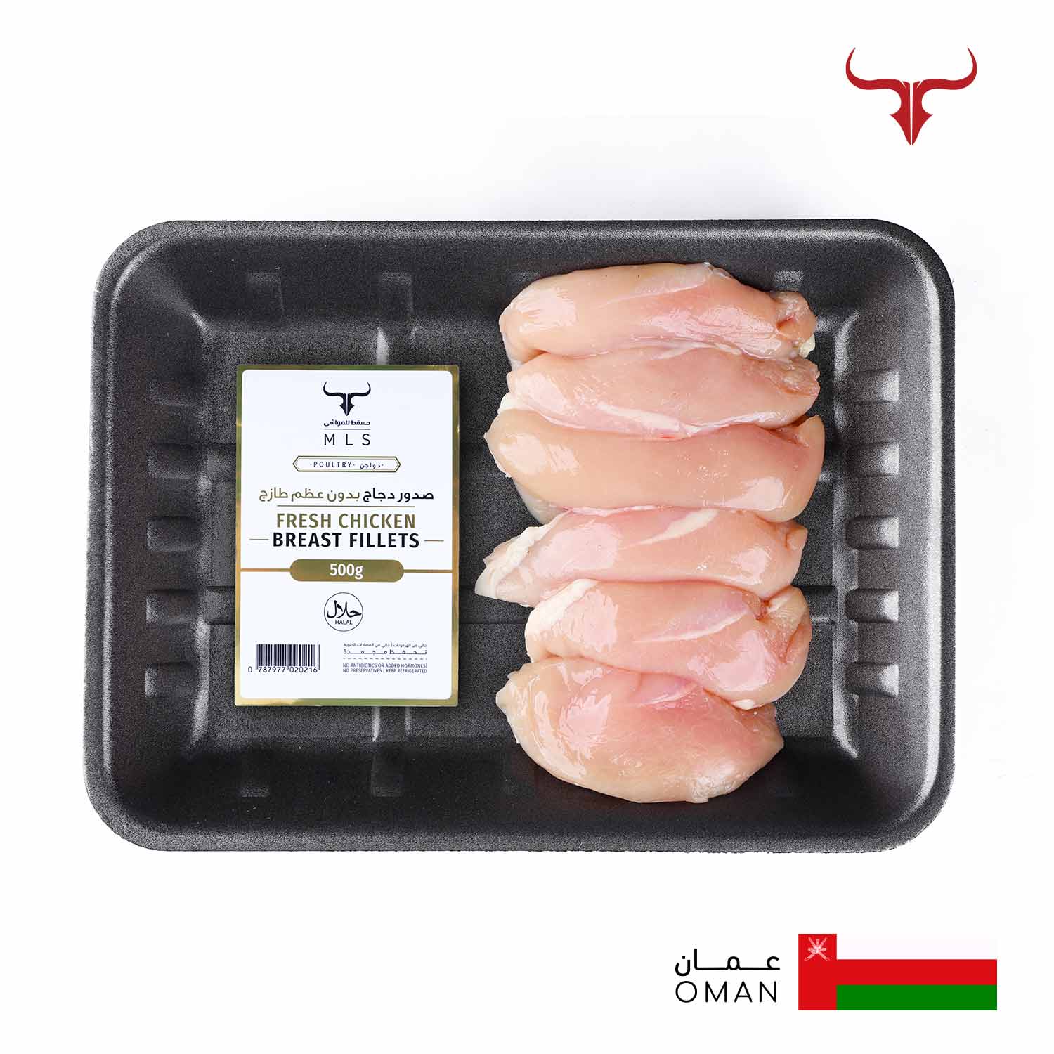 4500gm packet of fresh chicken breast, 100% hormone and antibiotic-free. MLS perfects this product in collaboration with Al Zain Farms. Halal and Omani.