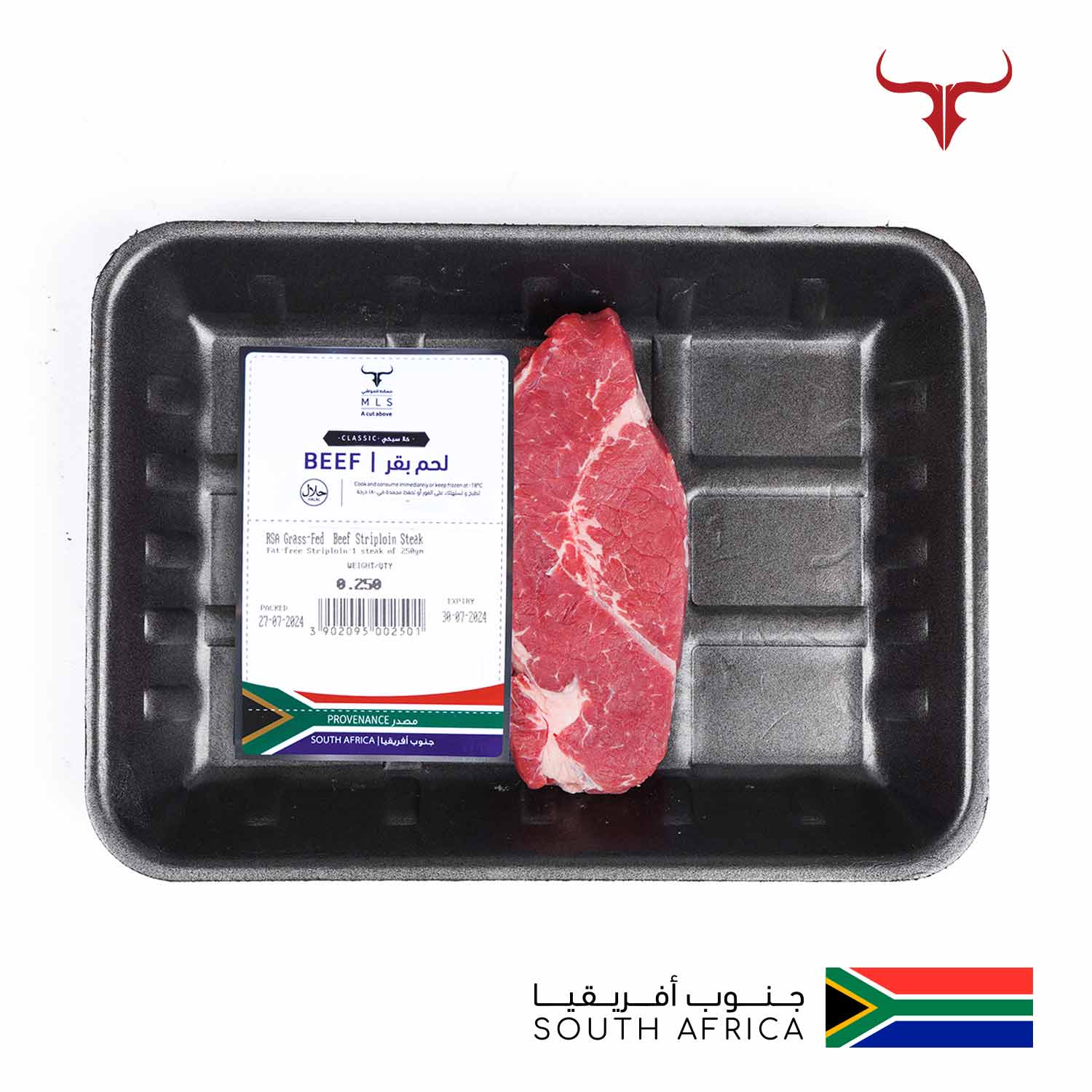 RSA Beef Striploin Steak - 1 steak of 250gm / Lean Edges / No Rub is backordered and will ship as soon as it is back in stock.